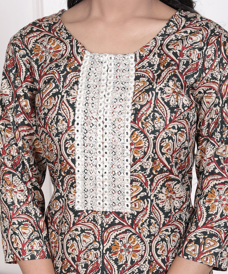 Add a graceful charm to your everyday wardrobe with the Miramaar Women's Green Lace Work Round Neck Straight Rayon Kurti. Crafted from soft and flowy rayon fabric, this kurti offers a comfortable fit with an elegant appeal. The delicate lace detailing enhances its feminine look, while the round neck and straight silhouette make it perfect for office wear, daily use, or casual outings. Stylish, simple, and versatile—this kurti is a beautiful addition to your collection.