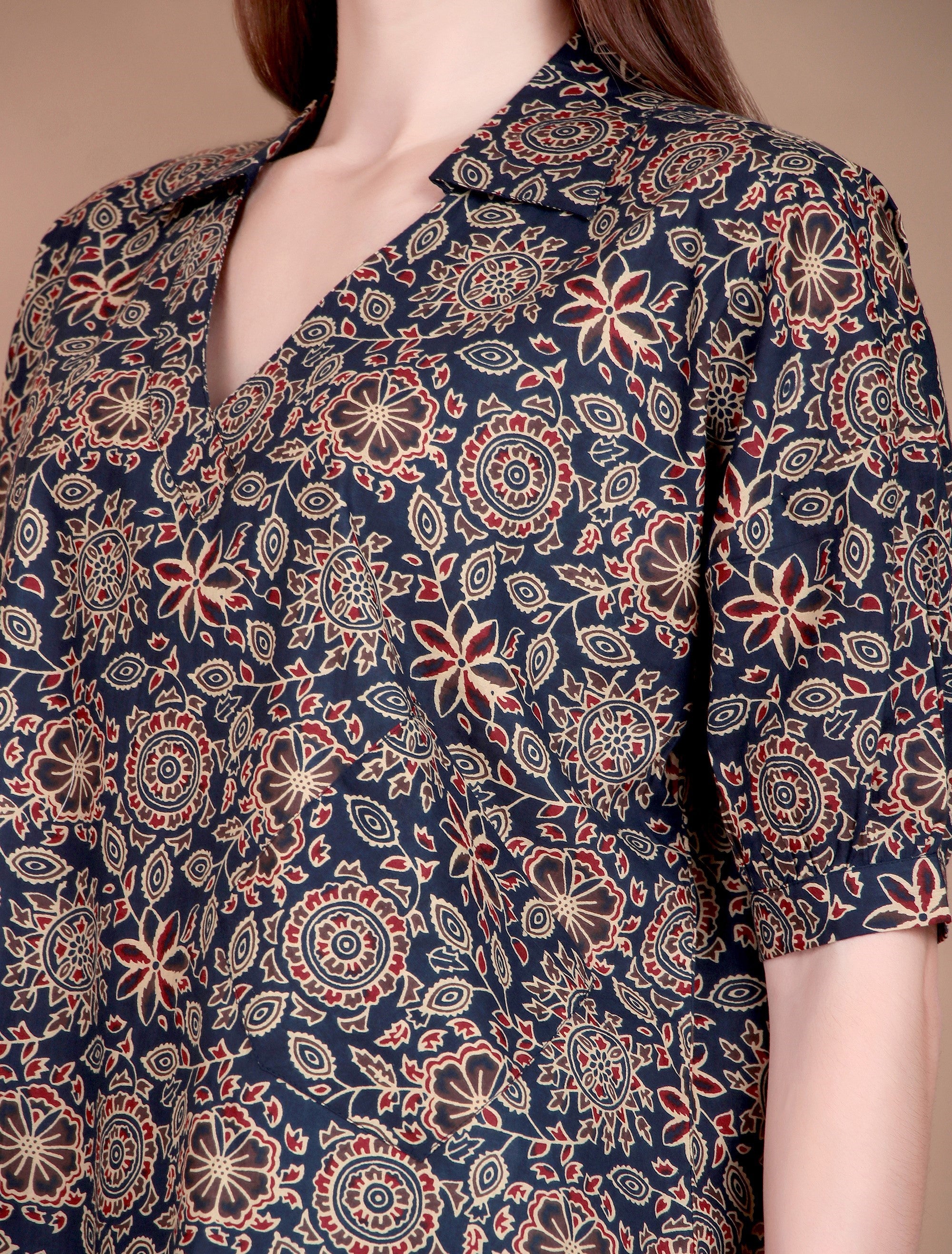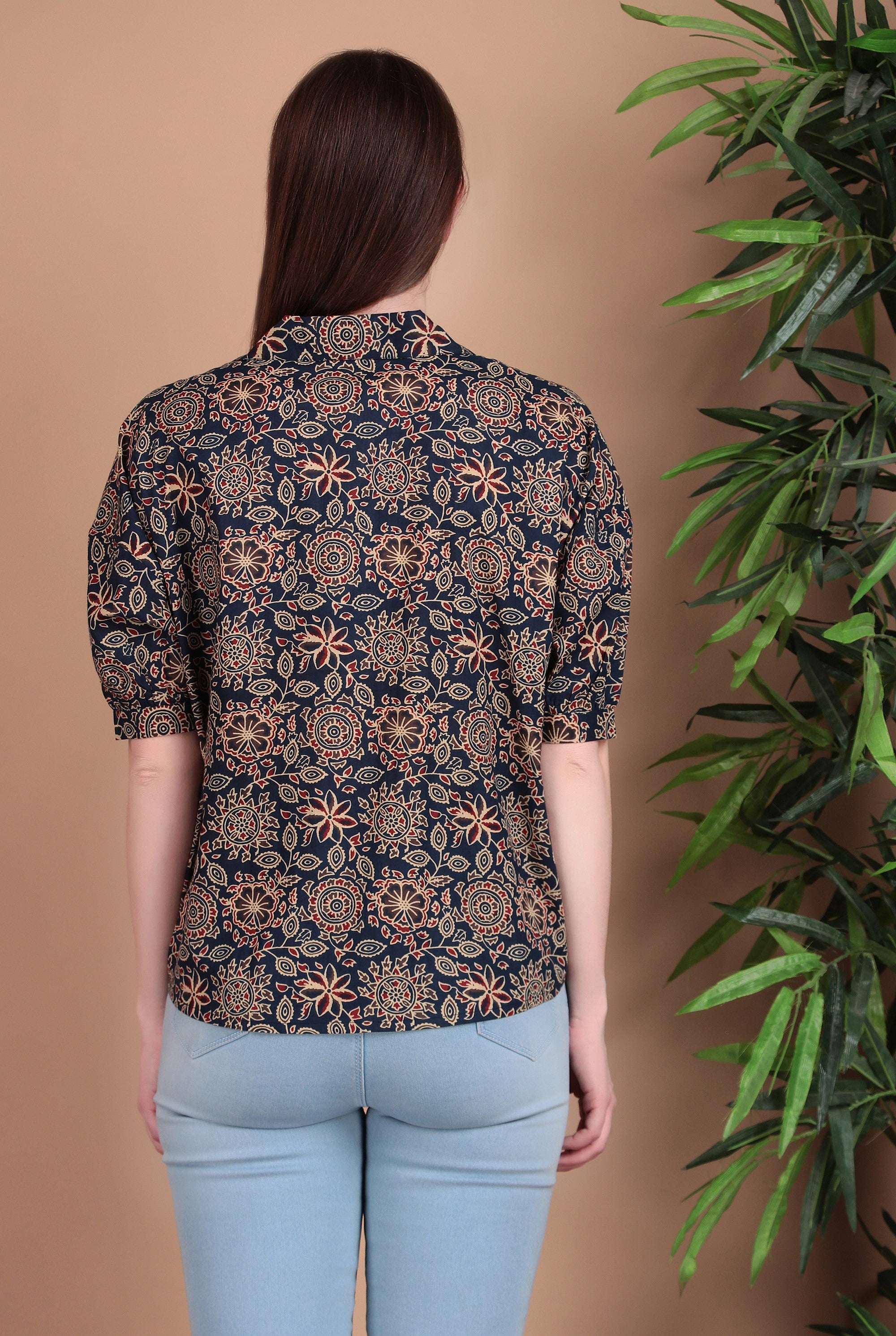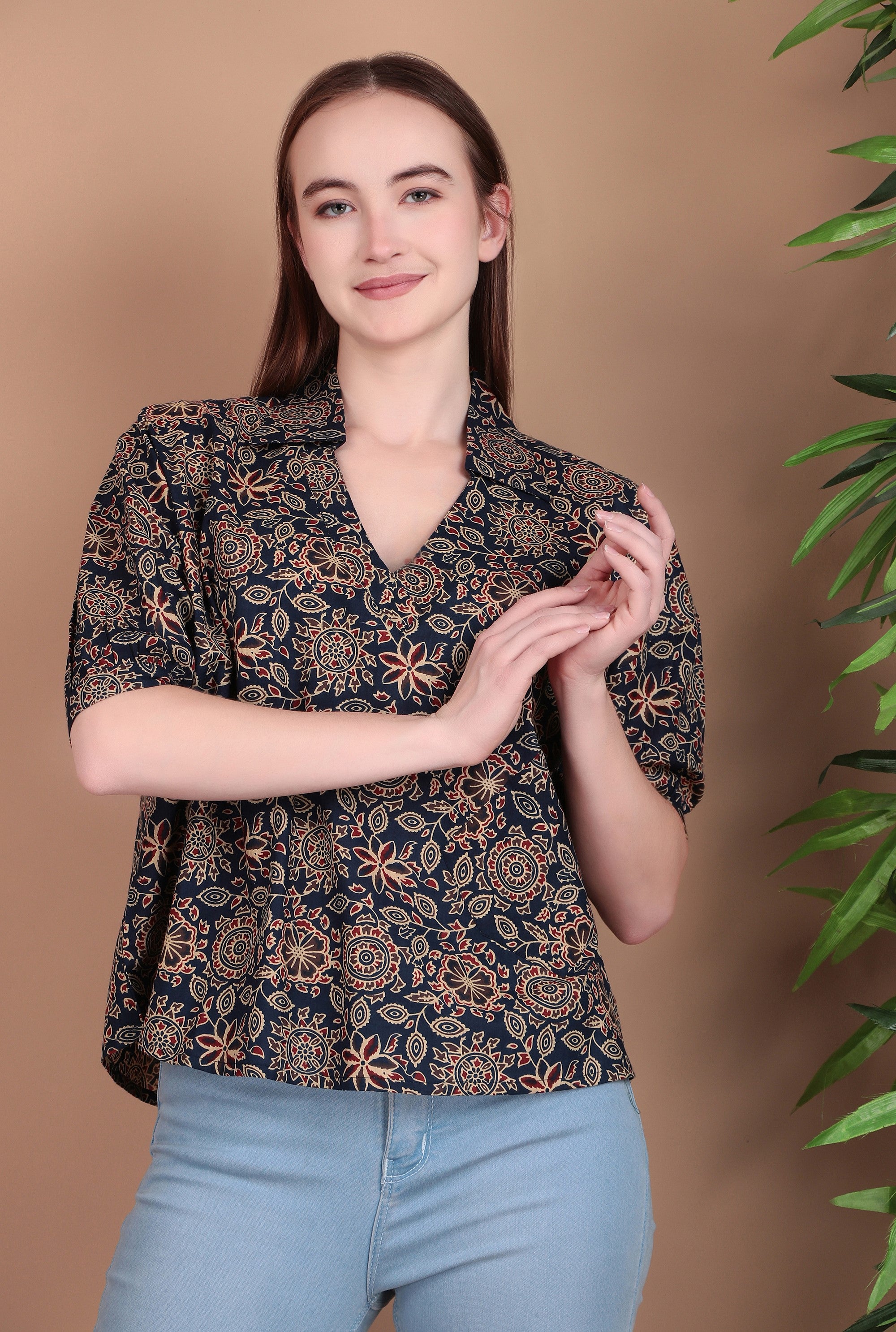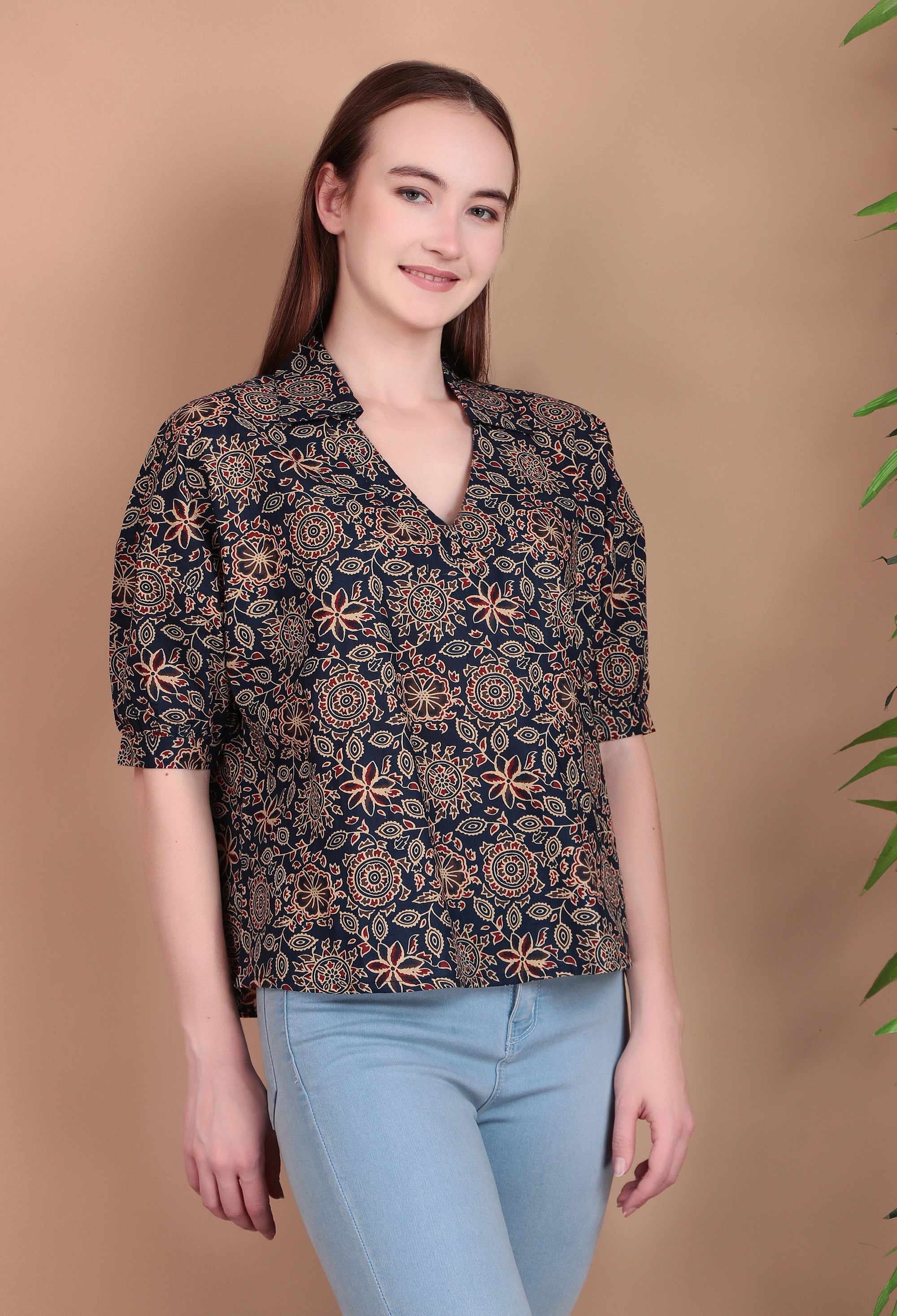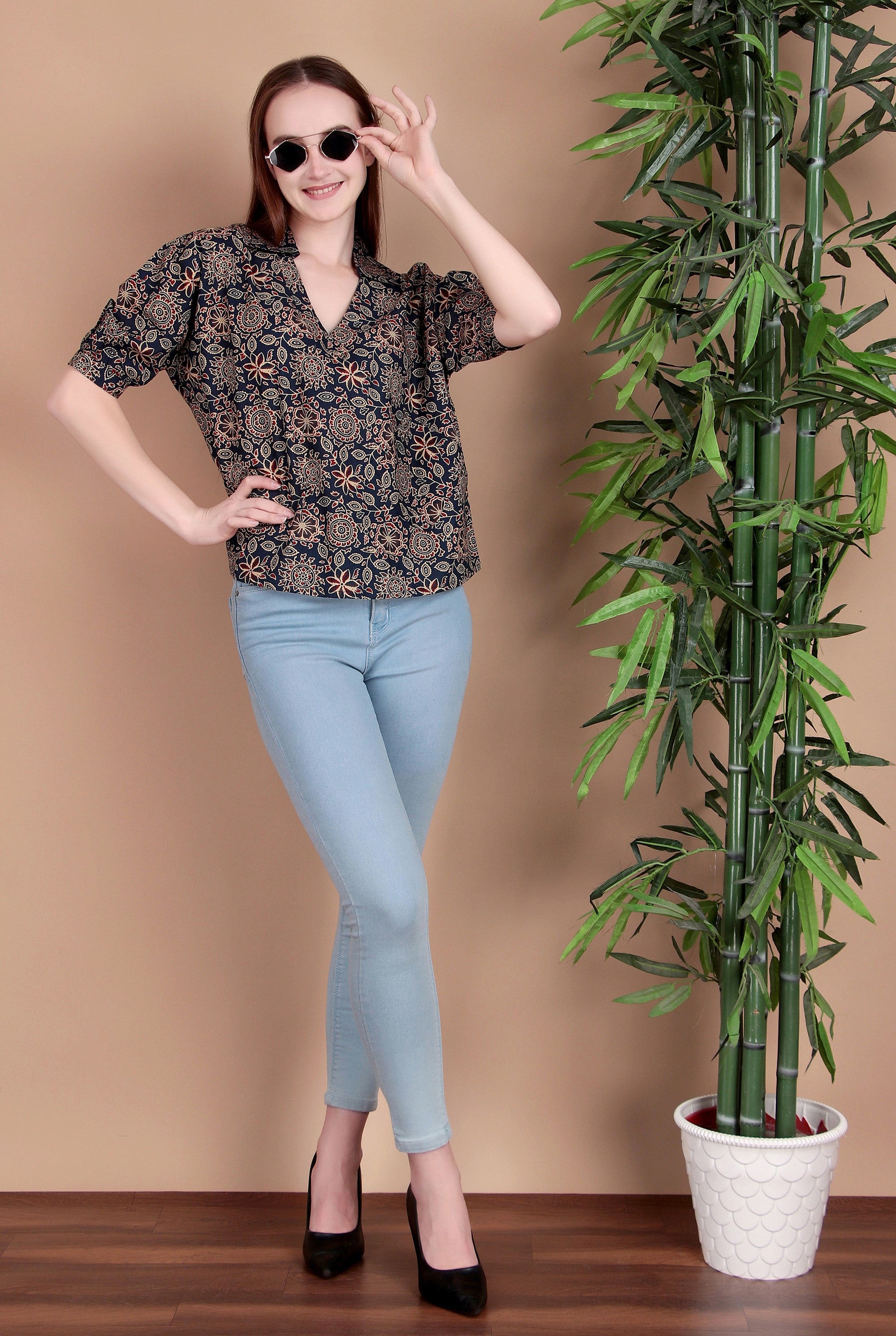 Upgrade your everyday wardrobe with Miramaar Women's Cotton Printed Blue Regular Top. Crafted from soft and breathable cotton fabric, this top ensures all-day comfort while keeping you fresh and stylish. The subtle printed design adds a touch of effortless charm, making it a versatile choice for workwear, brunch dates, or relaxed outings. Designed with a classic lapel collar and a regular fit, it pairs perfectly with jeans, trousers, or skirts for a polished casual look.