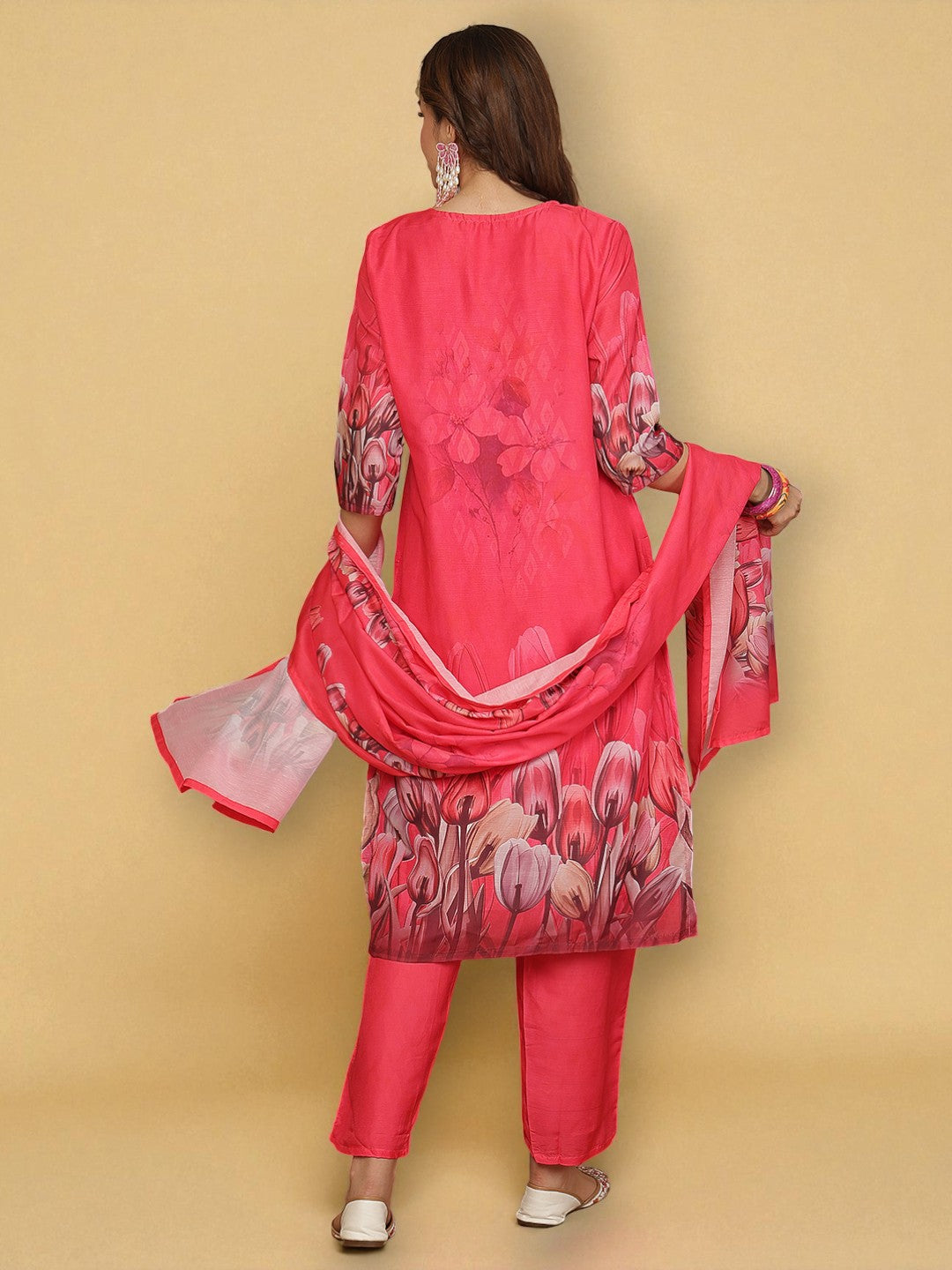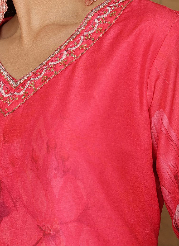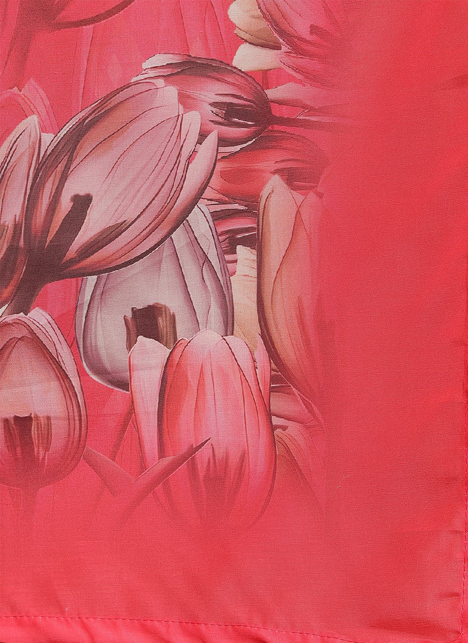 Bring vibrant style to your ethnic wardrobe with this coral red muslin kurta set from Miramaar. Crafted from soft and breathable muslin fabric, the straight-cut kurta features eye-catching digital prints that add a modern touch to traditional wear. The calf-length design, V-neckline, and 3/4 sleeves ensure a comfortable and flattering fit. Paired with matching pants and a coordinating dupatta, this set is perfect for festive occasions, casual outings, or stylish daywear with a contemporary twist.